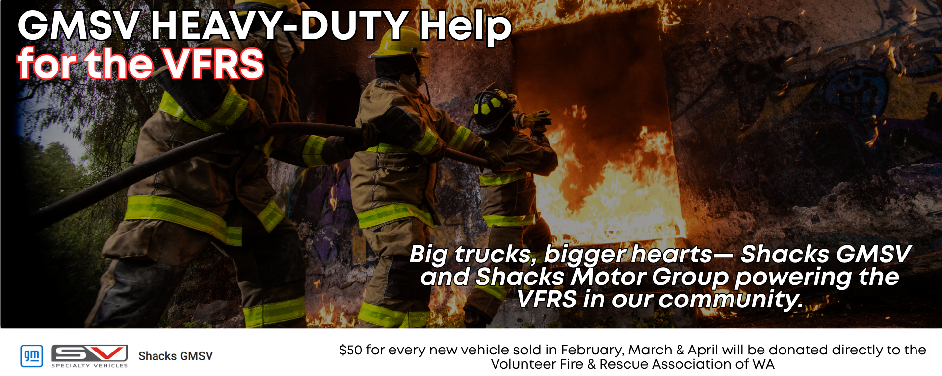 From February 1 to April 30, $50 from every new vehicle sold across our group will be donated directly to the Volunteer Fire & Rescue Services of WA.Our goal is to raise $12,000 over the three‑month period.